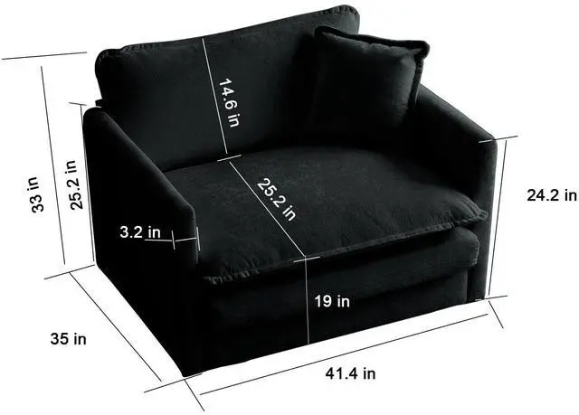 • Comfy Deep Single Seat Sofa Upholstered Reading Armchair Living Room Chair Black Chenille Fabric , 1 Toss Pillow