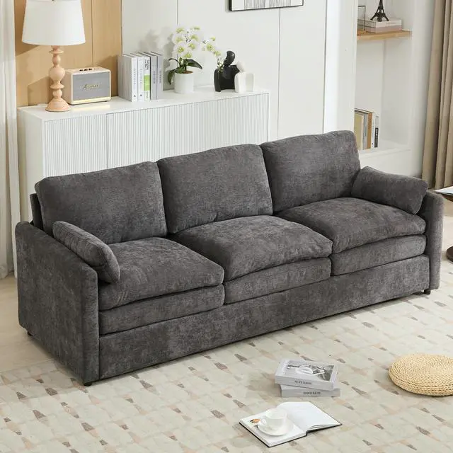 Premium Chenille Fabric Crafted with soft and luxurious chenille fabric, this 3-seater sofa offers a plush and smooth texture that enhances comfort while providing a sophisticated look. The high-quality material is also durable, resistant to wear, and easy to maintain, making it a perfect addition to any living space.