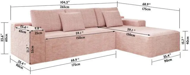 Modular Sectional Sofa: This sectional sofa featuring a sleek design, clean lines, and high-quality plush corduroy Fabric, This sectional set maximizes space when placed against a wallthis corner sofa effortlessly adds a timeless and sophisticated touch to your home. Designed to be the focal point of attention, it's an ideal choice for elevating the ambiance of living rooms, apartments, and bedrooms.