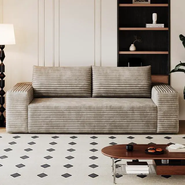 Skin-Friendly Fabric: This sofa is crafted from a soft, skin-friendly Cotton fabric that feels as light as clouds and exudes a luxurious appearance. Its warm touch ensures comfort throughout the year. The unique striped pattern and gentle sheen enhance the tactile experience, elevating the sensory experience to new heights. It seamlessly blends comfort with visual appeal, creating a cohesive and harmonious space.