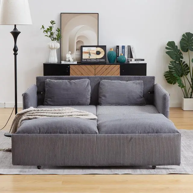 MODERN DESIGN: The surface of the sofa bed is selected high-quality corduroy, comfortable and stylish. The seat cushion is filled with high-density sponge, which makes it comfortable to sit and not easy to sink even after sitting for a long time. Low-key classic design style, add a different kind of warmth to your home.