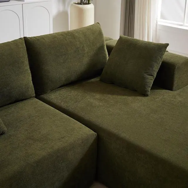 [Modern Sectional Sofa Couch]This Chenille upholstery sectional sofa features a simple style, focusing more on clean lines to bring a timeless and chic to your home, This Upholstered sofa sectional features square arms and includes six pillows[dimensions: 17.7 * 29.5 (3pcs), 17.7 * 17.7 (2pcs), 13.7 * 27.5 (1pcs) ] make sure your living room the center of attention