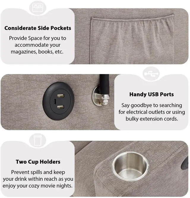 Two Cup Holders - Having two built-in cup holders helps prevent spills, so you don't have any stains to worry about. Plus, you can keep your drink within reach as you enjoy your cozy movie nights or leisurely reading sessions.