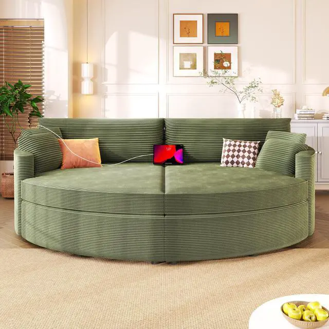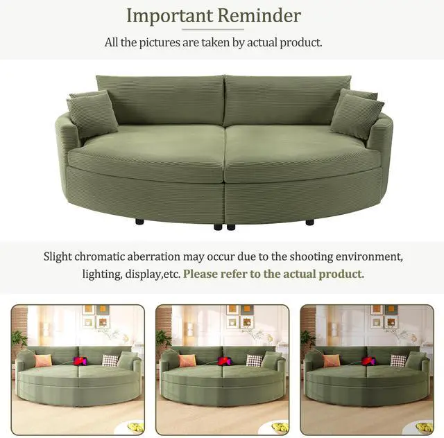 Stylish & Practical Accessories Comes with four matching throw pillows for added comfort and decorative appeal. The rounded silhouette creates a chic, modern look, while the thoughtful details make it a functional addition to any home.