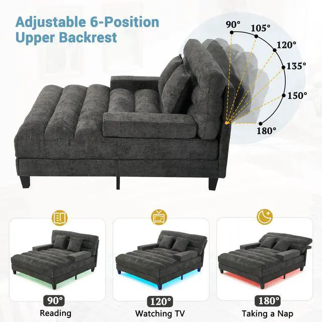 Adjustable 6-Position Upper Backrest - Enjoy customized comfort with an upper backrest that adjusts to six different angles90°, 105°, 120°, 135°, 150°, and 180°. Whether you prefer upright seating for reading, a relaxed recline for watching TV, or a fully laid-back position for napping, this versatile design adapts to your needs with ease.