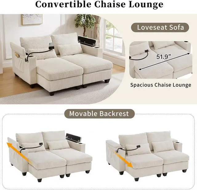 Dual-Mode Convertible Design This innovative sofa chair effortlessly transforms from a spacious chaise lounge into a functional loveseat sofa. By simply pushing the backrest backward, the sofas seat area extends, providing comfortable lounging space for you. This space-saving dual-purpose design makes it ideal for small apartments, multifunctional rooms, or households that value flexibility without sacrificing comfort or aesthetics.
