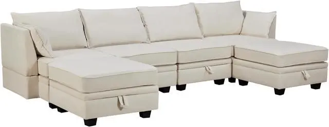 Bonus storage function under each seat of this 6-piece sofa. It is not only a holy place for children's toys, but also can store blankets and remote control to make the room look clean and tidy.