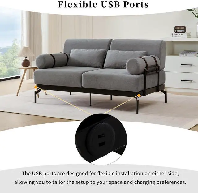 Integrated USB Ports for Convenience - this sofa includes built-in USB charging ports integrated into the steel side frame. The USB mount can be installed on either the left or right side, providing flexible configuration options to best fit your rooms layout and charging needs.