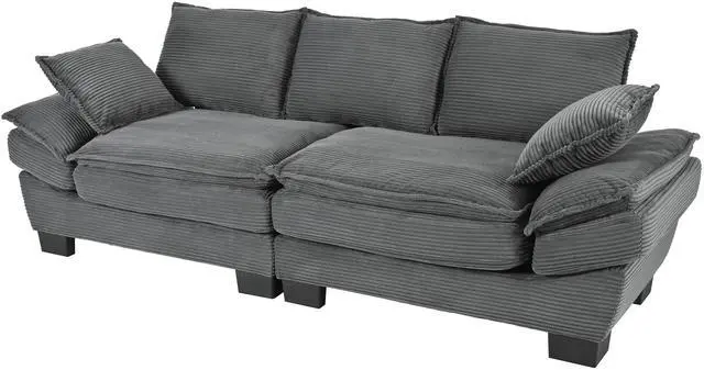 U-Style 85.4" Modern Curved Sofa, Back Upholstered Couch with 2 Decorative Throw Pillows, Corduroy Fabric Couch for Living Room, Bedroom , Apartment