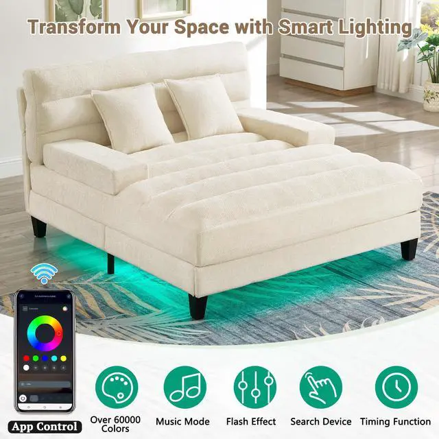 RGB LED Lighting with Smart Control - The sofa base features built-in RGB LED lights capable of displaying over 60, 000 color variations. Use the dedicated mobile app to change colors, adjust brightness, or activate special effects. With music-sync, and timer modes, you can create the perfect atmospherewhether for a lively party, a cozy movie night, or a soothing evening wind-down.