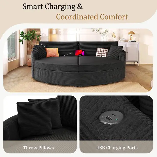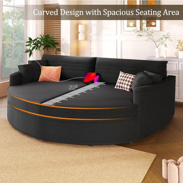Stylish & Practical Accessories Comes with four matching throw pillows for added comfort and decorative appeal. The rounded silhouette creates a chic, modern look, while the thoughtful details make it a functional addition to any home.