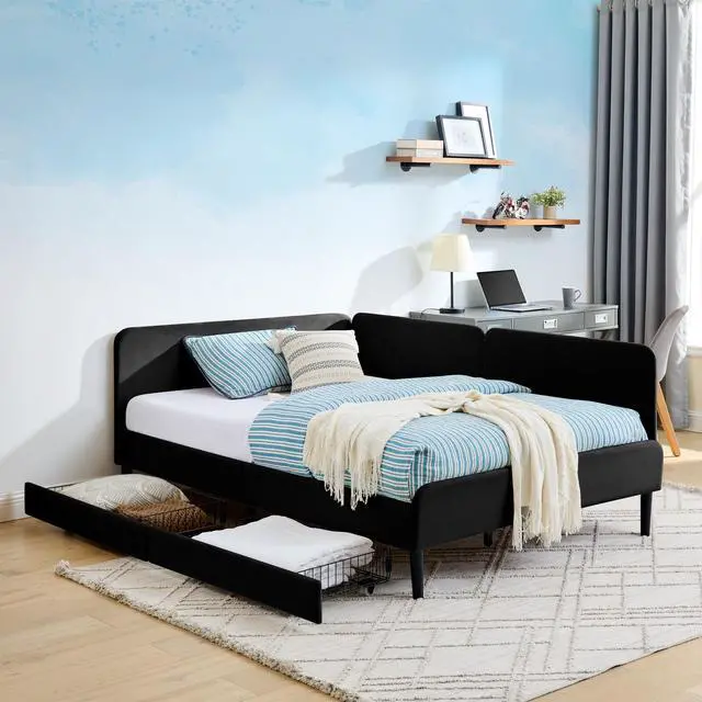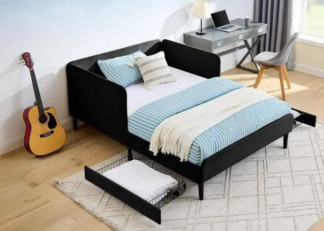 [Storage Capability]--The bed frame with 2 storage drawers features easy-to-use wheels on each drawer for effortless sliding in and out. Offering additional space to store bedding or other item.