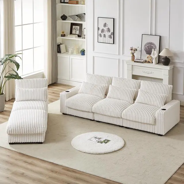 This sofa set uses high quality corduroy fabric, soft and comfortable. Its classic and fashionable appearance design will add a elegance and taste to your home