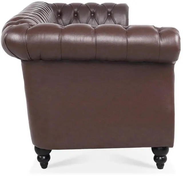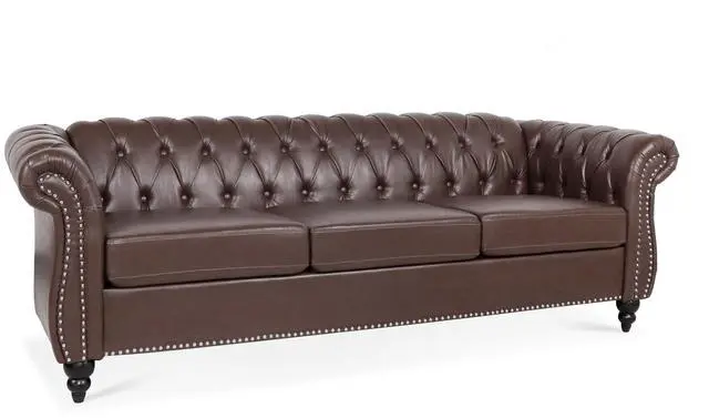 Comply with US TB117 standard The deep pull buckles are arranged in a staggered manner, and the backrest is evenly stressed Soft PU leather fabric, easy to clean