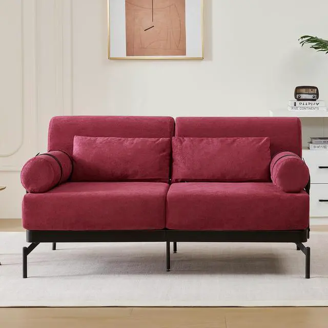 Unique Cylindrical Armrest Design - This loveseat sofa features two uniquely designed cylindrical armrests wrapped with adjustable faux leather straps, offering both aesthetic appeal and practical support. The bold, modern design adds an eye-catching architectural accent, setting it apart from traditional sofas.