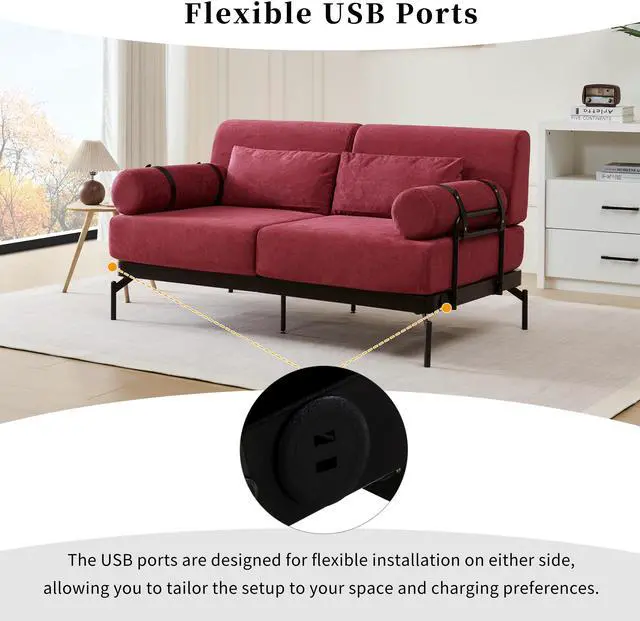 Integrated USB Ports for Convenience - this sofa includes built-in USB charging ports integrated into the steel side frame. The USB mount can be installed on either the left or right side, providing flexible configuration options to best fit your rooms layout and charging needs.