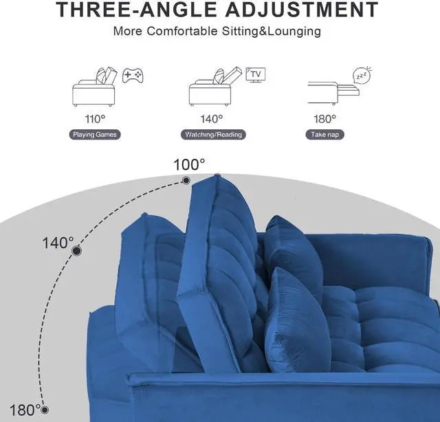 3 Levels Adjustable BackrestThe adjustable backrest of the loveseat sleeper sofa can be converted to 3 different angles, which allows you to find the best comfortable posture. Design with side pockets for easy-reaching of TV remotes, cell phones, magazines, keys, glasses, or that book you want to read.