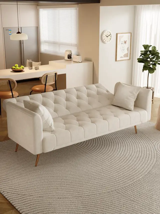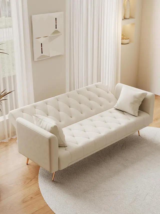 71 inch convertible love seat sofa, American retro beige velvet, suitable for small living room, bedroom, office