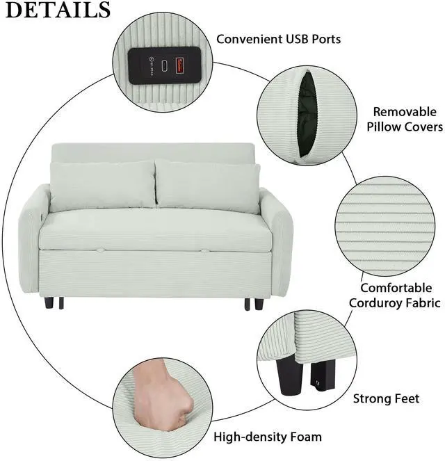 High-quality Material - In order to provide a comfortable and comprehensive using experience, this sofa bed is covered in Corduroy Fabric which makes the sofa more comfortable to touch. Moreover, the backrest and cushion on the seat are filled with spring package and high-density foam, which will offer you extra support and comfort.