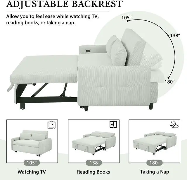 3 Levels Adjustable Backrest - The adjustable backrest of the sleeper sofa can be converted to 3 different angles (105°/138 °/180°) which allows you to find the best comfortable posture. The reclining sofa bed meets your various needs. Nice for sitting, lying, and sleeping.