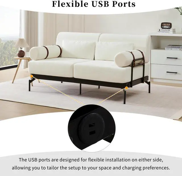 Integrated USB Ports for Convenience - this sofa includes built-in USB charging ports integrated into the steel side frame. The USB mount can be installed on either the left or right side, providing flexible configuration options to best fit your rooms layout and charging needs.