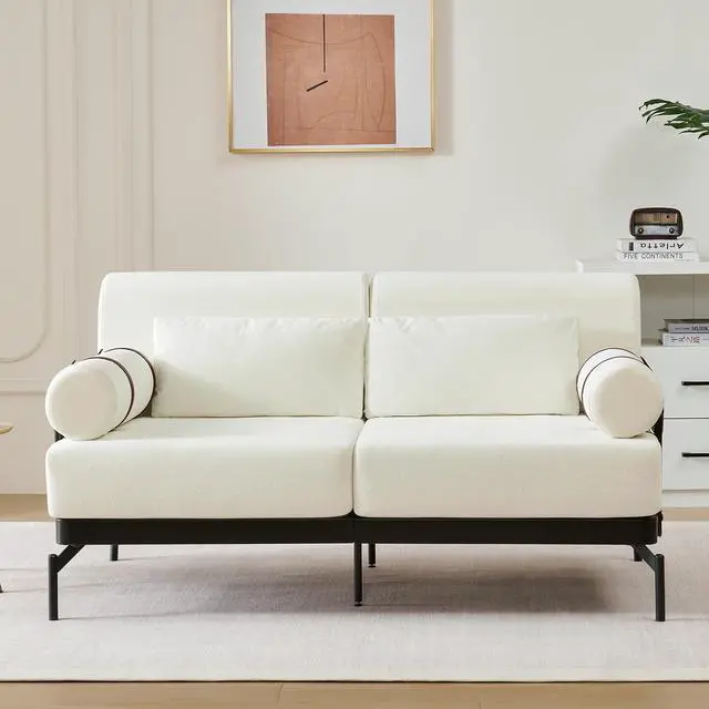 Unique Cylindrical Armrest Design - This loveseat sofa features two uniquely designed cylindrical armrests wrapped with adjustable faux leather straps, offering both aesthetic appeal and practical support. The bold, modern design adds an eye-catching architectural accent, setting it apart from traditional sofas.