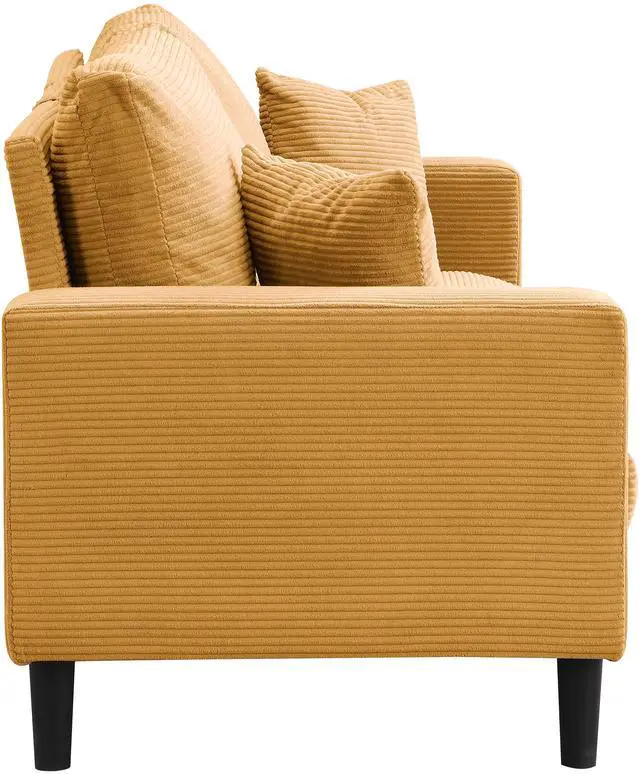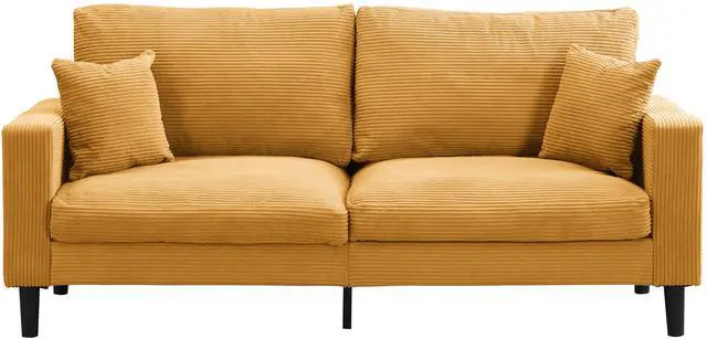 Comfortable This small couch with upholstered sponge, human design, 2 pillows, offer you comfy touch. Also the high-density sponge cushion is soft and comfortable, providing ultimate seating comfort and cushion durability to last.