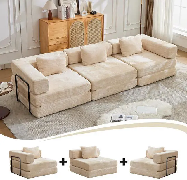 DIY Modular Sectional Design: Easily rearrange and combine sections to create multiple configurationschaisea spacious 3 seaters couch, or a cozy sleeper floor bed. Perfect for changing spaces or multifunctional rooms.