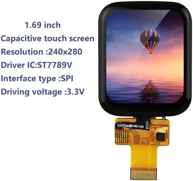 • 1.69 inch 240x280 Full Viewing Angle IPS TFT LCD Capacitive touch screen 4Line SPI interface ST7789V driver smart watches screen