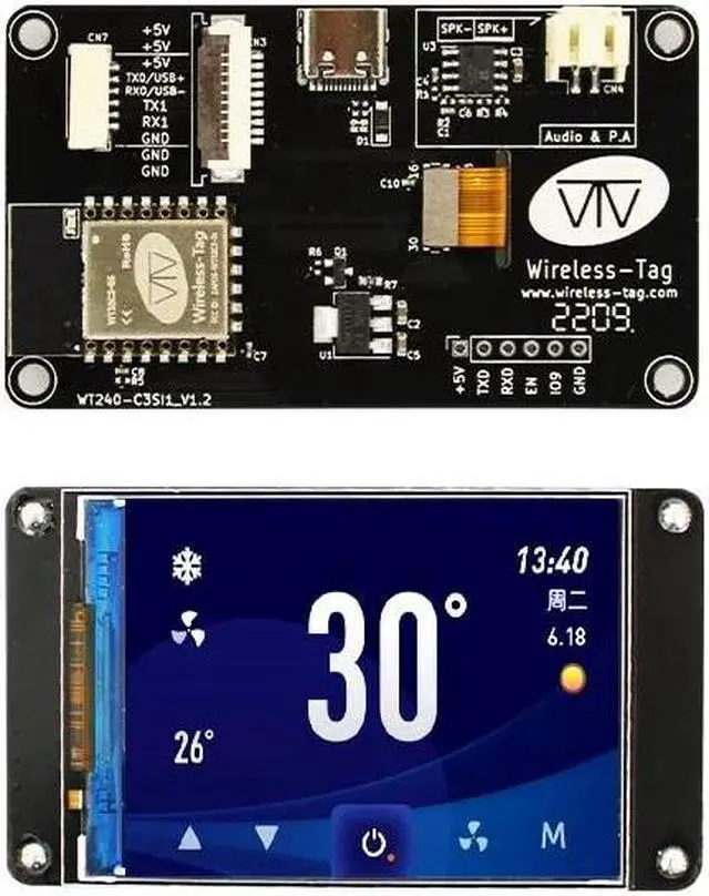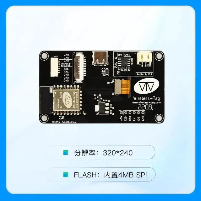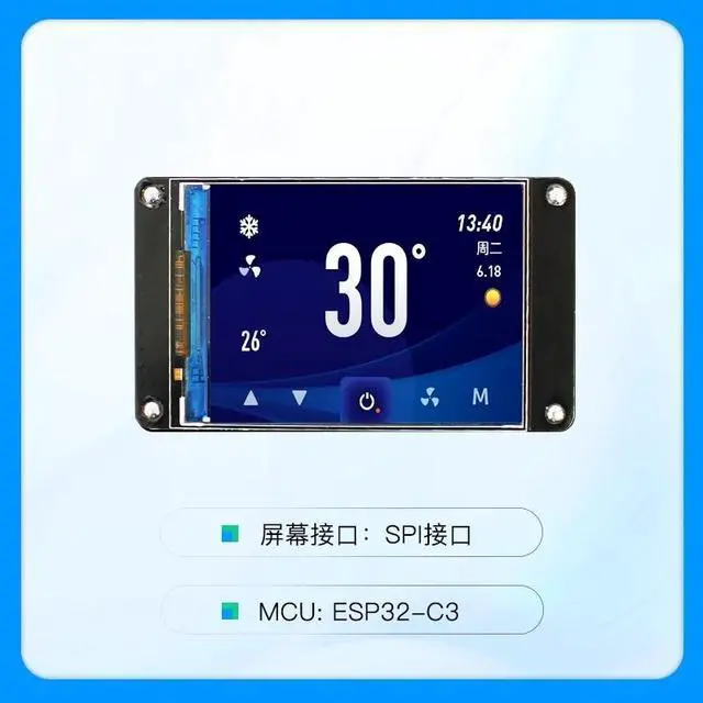 ZX240-C3SI1 is a 2.4 -inch IPS serial screen with a resolution of 240*320, designed and developed on the basis of ESP32-C3 and domestic core efficient development platform 8ms(http: /8ms. xyz) for market l0T application requirements. Support WIFI\ Bluetooth, users can carry out serial communication through the extension interface, key function development and debugging, greatly shorten the user product development cycle.
