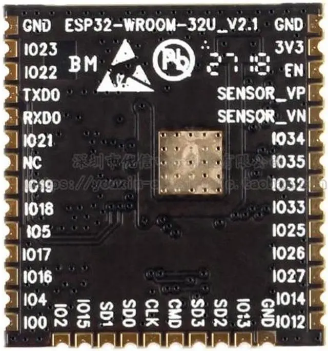 • ESP32-WROOM-32U, Universal Wi-Fi + Bluetooth + Bluetooth LE MCU Module(ESP32-WROOM-32U-N4)