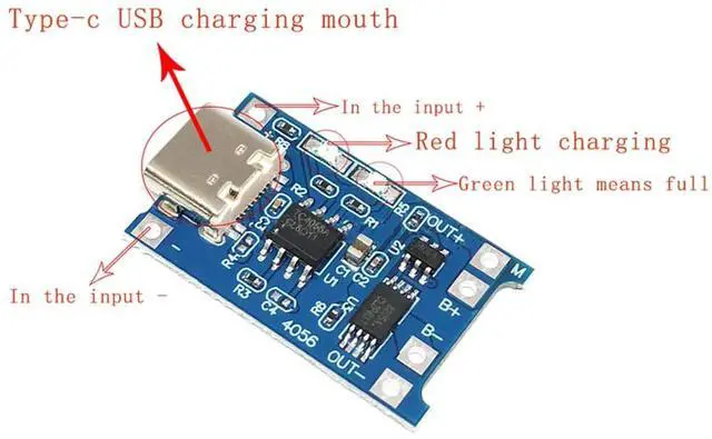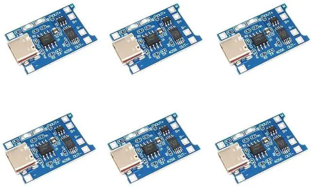 • 6pcs TP4056 Type-C USB 5V 1A Lithium Battery Charger Module Charging Board with Dual Protection Functions