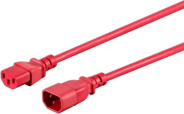Save an AC power outlet by connecting your computer monitor to the computer power supply or extend a cable with an IEC 60320 C13 connector on one end. This cable features a female IEC 60320 C13 connector on one end and a male IEC 60320 C14 plug on the other end. Simply mate the male C14 connector to another cable with a female C13 connector. Alternatively, mate the male C14 connector to the C13 panel connector on a computer power supply then mate the female C13 connector to a male C14 connector on a monitor or monitor AC power adapter.