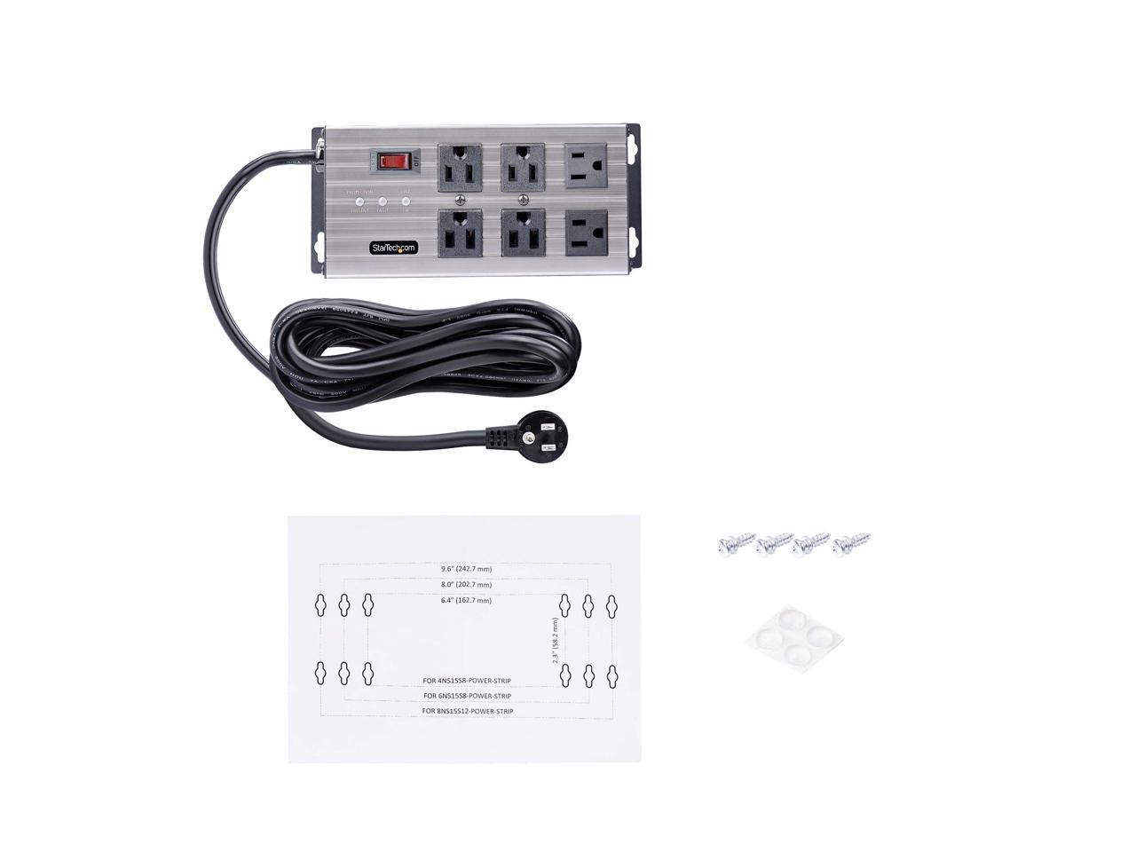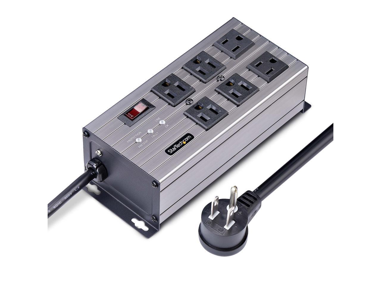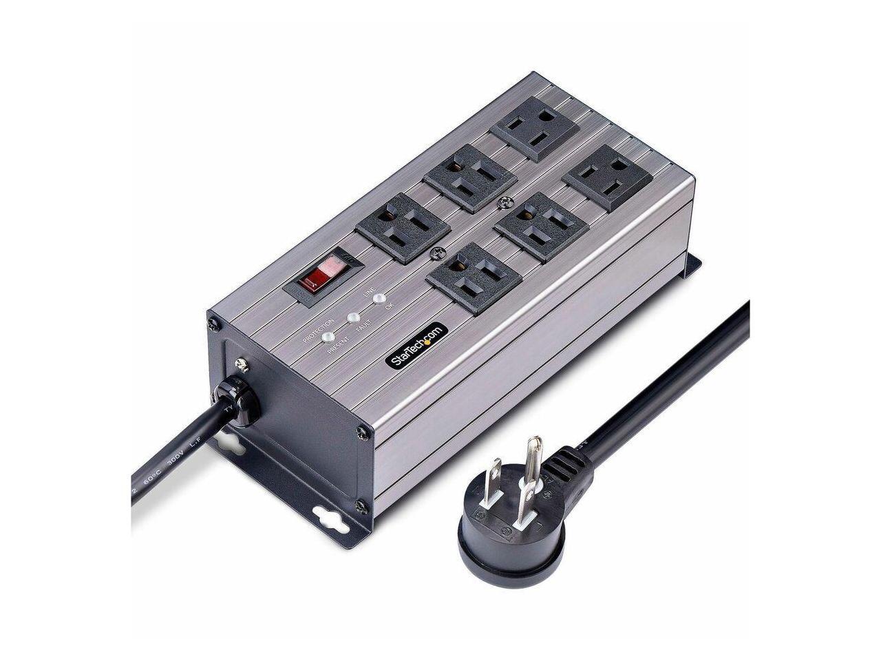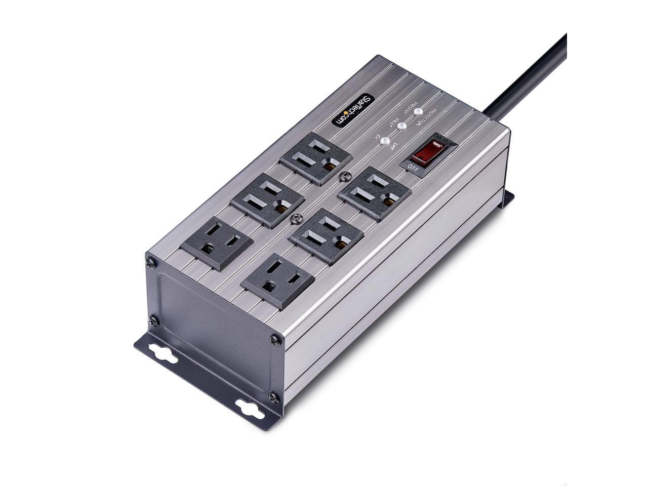 StarTech 6-Outlet Industrial Power Strip 125V/15A EMI/RFI Isolation Surge Protection Mountable PDU 8ft NEMA 5-15P Cord UL Listed 6N515S8POWERSTRIP