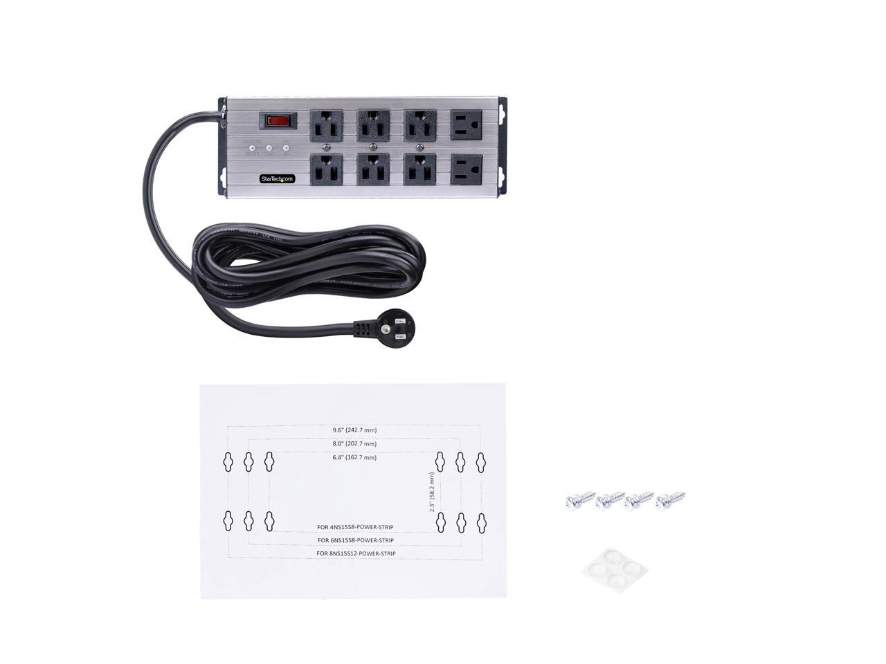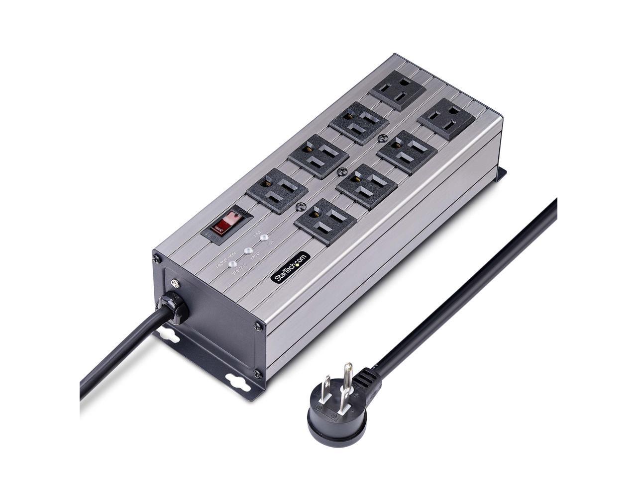 StarTech 8-Outlet Industrial Power Strip 125V/15A EMI/RFI Isolation Surge Protection Mountable PDU 12ft NEMA 5-15P Cord UL Listed 8N515S12POWERSTRIP