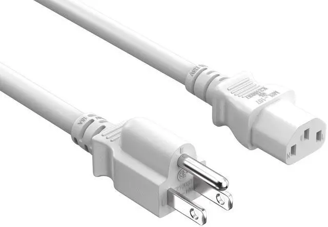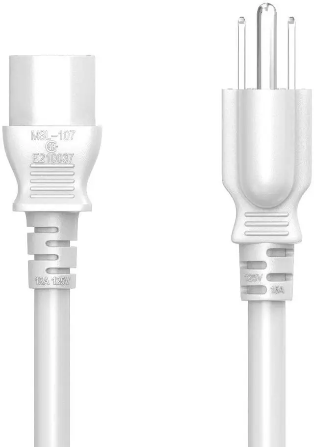 This standard power cord is designed to work with most PC, Monitors, Scanners, Printers, TV, and other devices that use the 3-pin shroud power connector. Cable features an AC style plug (NEMA 5-15P) on one end and a computer style receptacle (IEC-320-C13) on the other end. The female connector plugs directly into the device while the male connector plugs into a standard outlet.