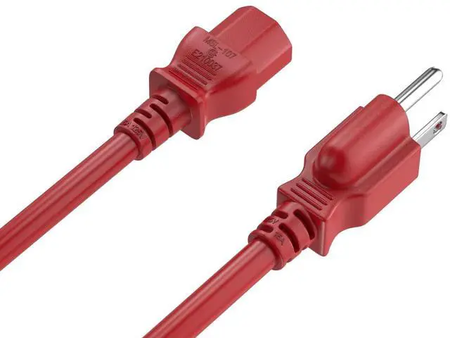 CableLeader 4ft 14 AWG Universal Power Cord IEC320 C13 to NEMA 5-15P, Extension Power Cord, Compatible with Computers, Monitors, Printers & TVs, Red, Pack of 1