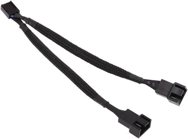 A Y-cable to connect 3x4-Pin PWM fans to one 4-Pin PWM connector. As fan control via the Mainboard with a PWM fan is much more affordable than a fan controller, this cable is perfect to give more flexibility. The extension cable is sleeved with a black mesh which additionally protects the cable and looks great! This further expands the lifespan of the cable. The ends towards the connectors are fixated with heatshrink for a clean finish. A white marking on one of the split cables shows from which cable the rpm signal is transmitted.