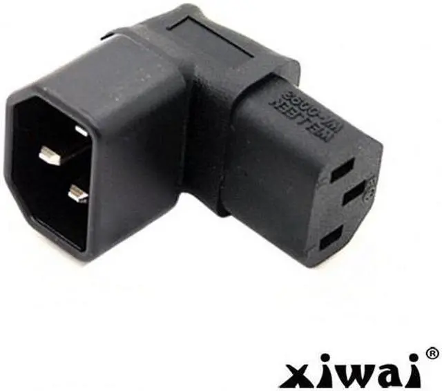 IEC Male C14 to Up Angled 90 Degree IEC Female C13 Power Extension Adapter An Up right angled power connector. You'll want to check your device to see which way the cable would exit when plugged in.