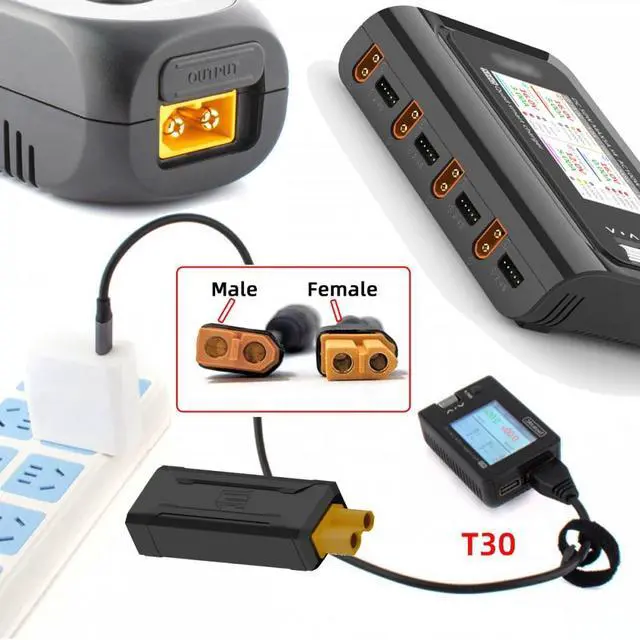 XT30 Male Protocol to XT30 Female Fast Charging Adapter for RC Lipo Battery Quadcopter Multicopter Aeromodelling