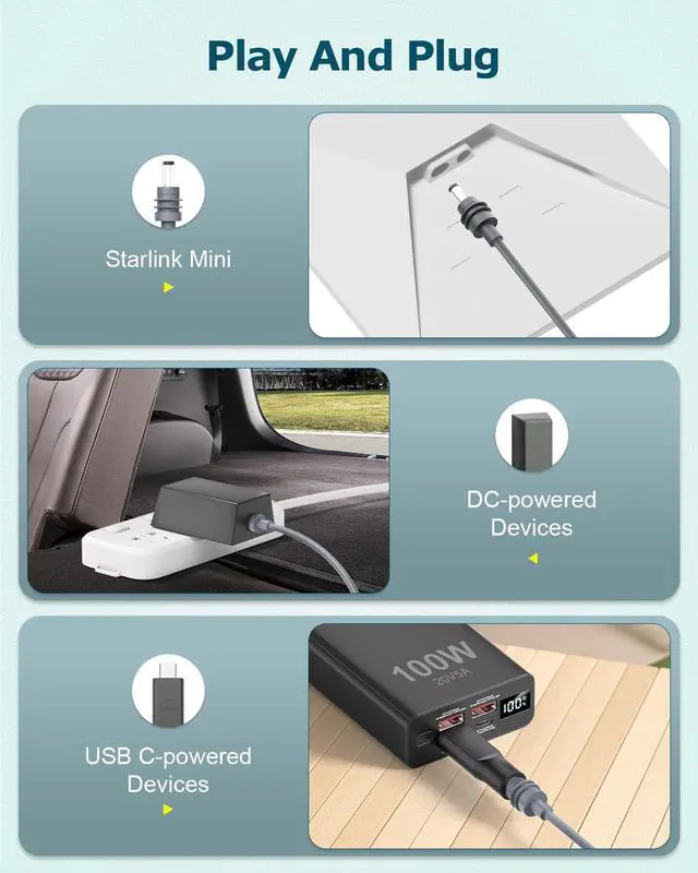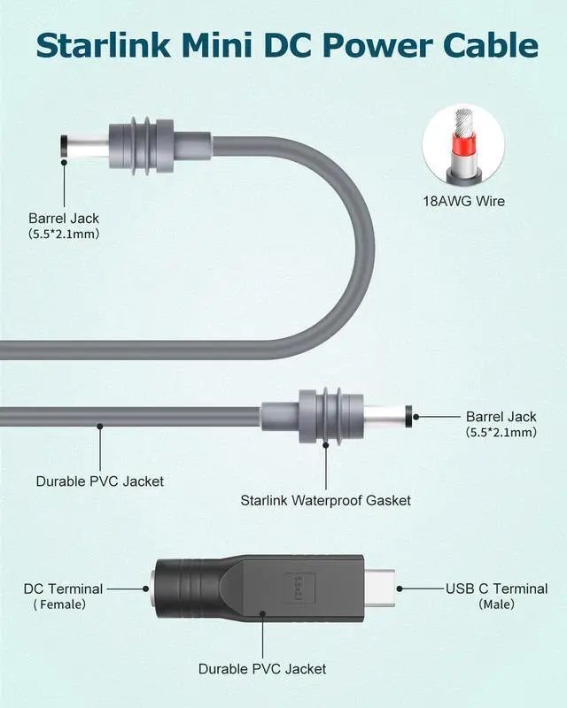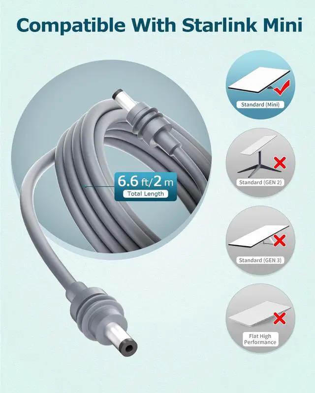 ![]() Starlink Mini Power Cable DC to DC Power Cord 6.6FT with DC to USB C Adapter ... | ![]() Starlink Mini USB C Cable 1.8M/5.9FT USB C to DC Power Cable for Starlink Min... | ![]() Starlink Mini USB C Power Cable 5.9FT 3 in 1 Starlink Mini Car Adapter DC Pow... | ![]() Starlink Mini Power Cable Cigarette Lighter, Starlink Mini USB C to DC Power ... | ![]() 2 in 1 Starlink Mini Cable USB C/Cigarette Lighter to DC Power Cable for Star... | ![]() Starlink Mini Car Charger Adapter 30V Output, 12V/24V to 30V 2A Power Supply ... | |