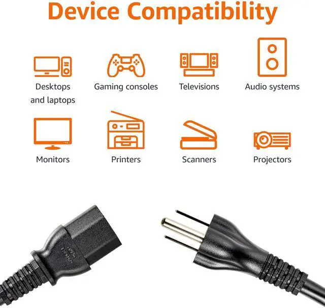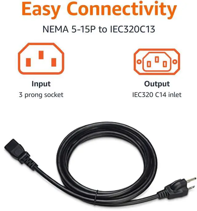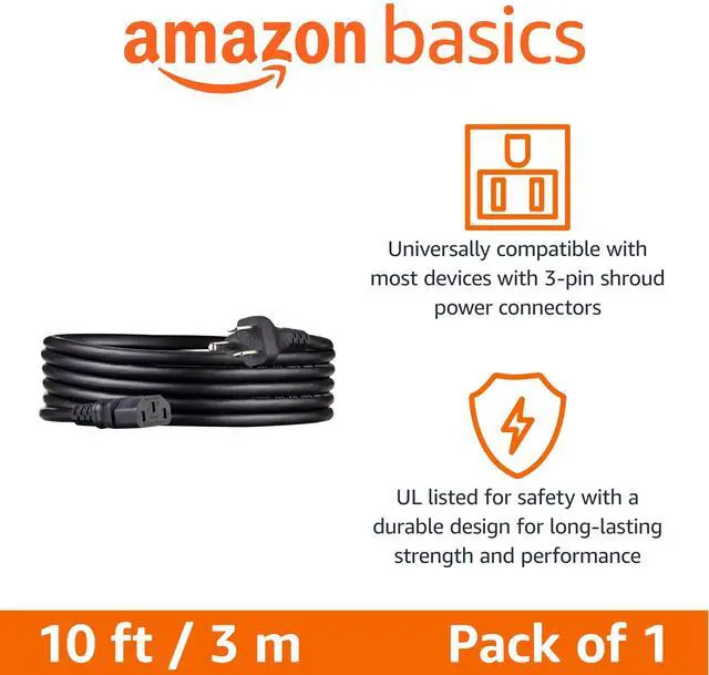 Amazon Basics Computer Monitor TV Replacement Power Cord - 10-Foot, Black