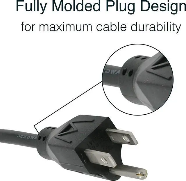 Replacement power cord for PC, monitor, printer, scanner, and More