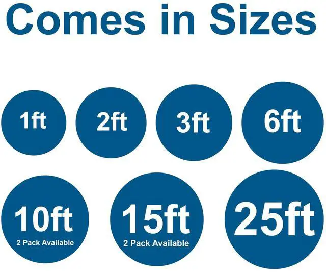 | Sizes | 1 Ft, 2 Ft, 3ft, 6ft, 10ft, 15ft, 25ft | 1 Ft, 2 Ft, 3ft, 6ft, 10ft, 15ft, 25ft | 1 Ft, 2 Ft, 3ft, 6ft, 10ft, 15ft, 25ft | 1 Ft, 2 Ft, 3ft, 6ft, 10ft, 15ft, 25ft | 1 Ft, 2 Ft, 3ft, 6ft, 10ft, 15ft, 25ft |