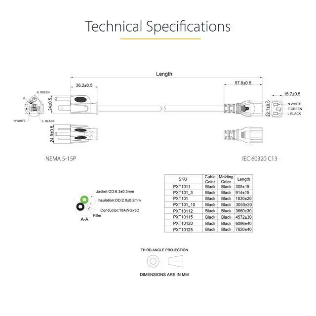 | Lengths | 1ft/30cm: PXT1011 3ft/90cm: PXT101_3 6ft/1.8m: PXT101 10ft/3m: PXT101_10 15ft/4.5m: PXT10115 | 3ft/90cm: PXT101143 6ft/1.8m: PXT101146 10ft/3m: PXT1011410 | 3ft/90cm: PXT101L3 6ft/1.8m: PXTR1016 10ft/3m: PXT101L10 15ft/4.5m: PXTR10115 | 3ft/90cm: PXTMG1013 6ft/1.8m: PXTMG1016 10ft/3m: PXTMG10110 15ft/4.5m: PXTMG10115 | 3ft/90cm: RTPAC1013 6ft/1.8m: RTPAC1016 10ft/3m: RTPAC10110 |