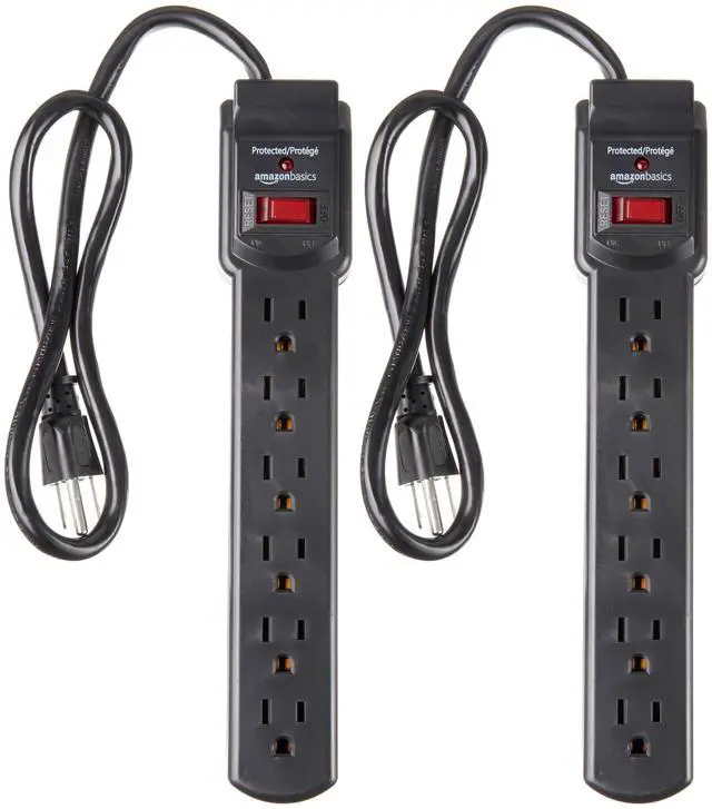 Amazon Basics 6-Outlet, 200 Joule Surge Protector Power Strip, 2 Foot, Black - Pack of 2