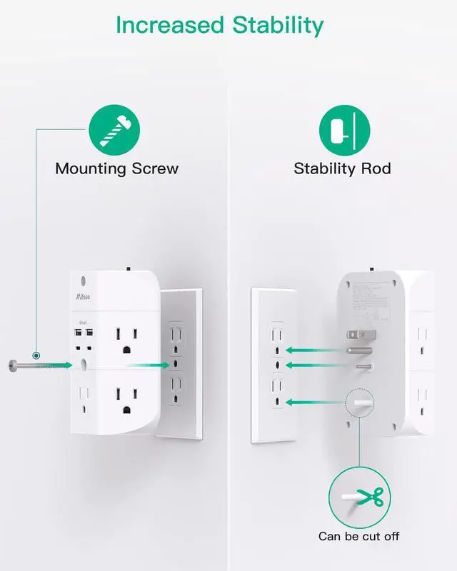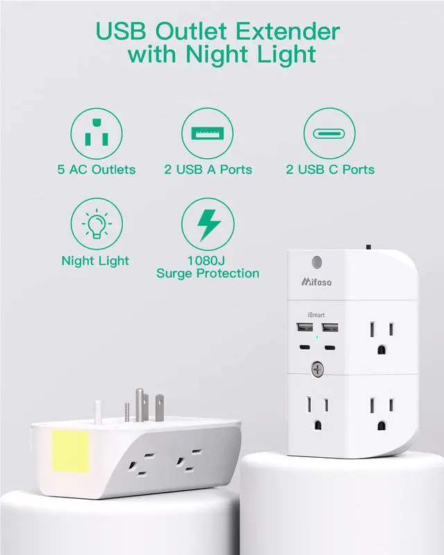 Just plug into an existing grounded outlet plate to power to your home appliances and USB charged devices, and expanding it into 5 AC sockets & 2 USB-A & 2 USB-C charging ports.