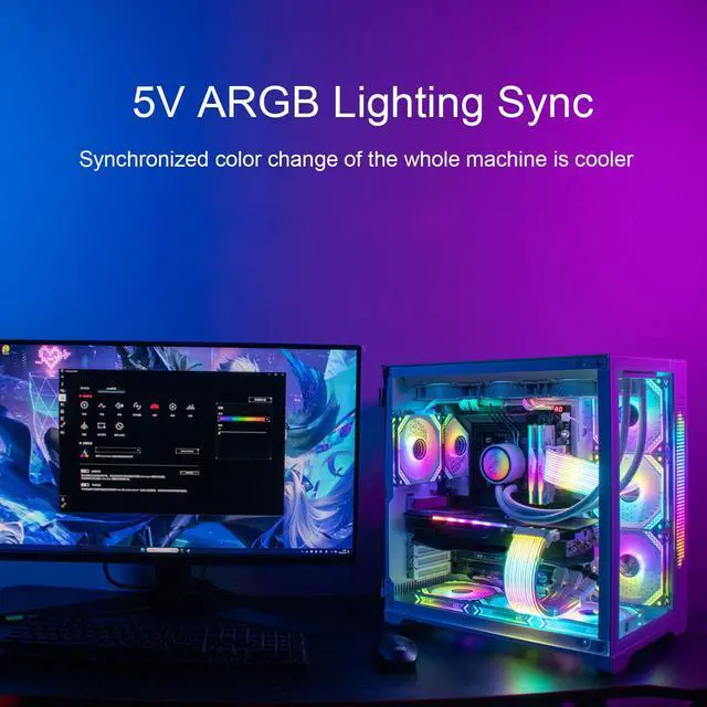 5V ARGB Lighting Sync: 8Pin to 2x8Pin connection cable kit for PC Case, supports 5V ARGB sync with for motherboards, providing addressable ARGB headers, controlled via software.