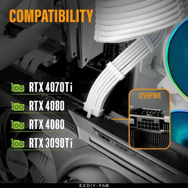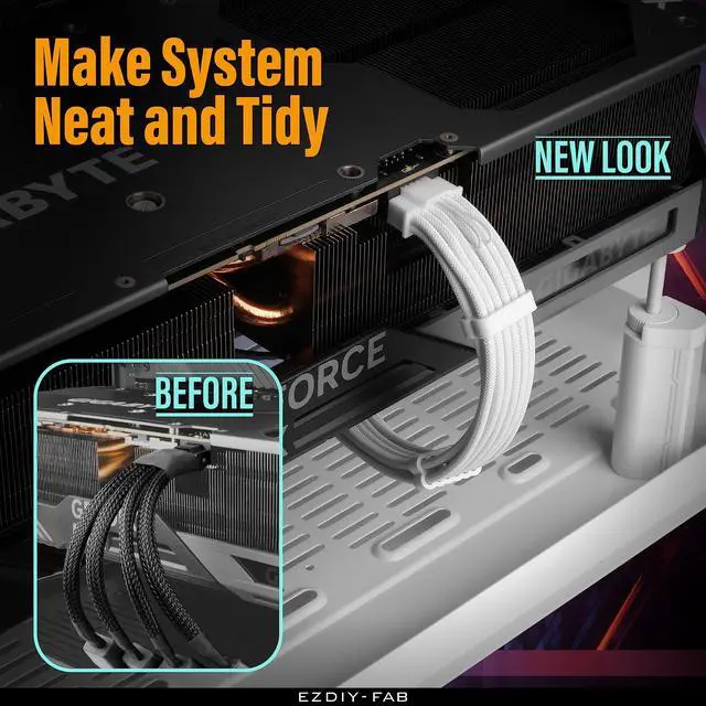 EZDIY-FAB sleeved extension cable material is made of 16AWG tinned copper, and the terminal is made of alloy copper, providing support for a maximum output of 600W, stable performance and safety under high-load use, no frame drop , no screen flickering, and continuous power supply.