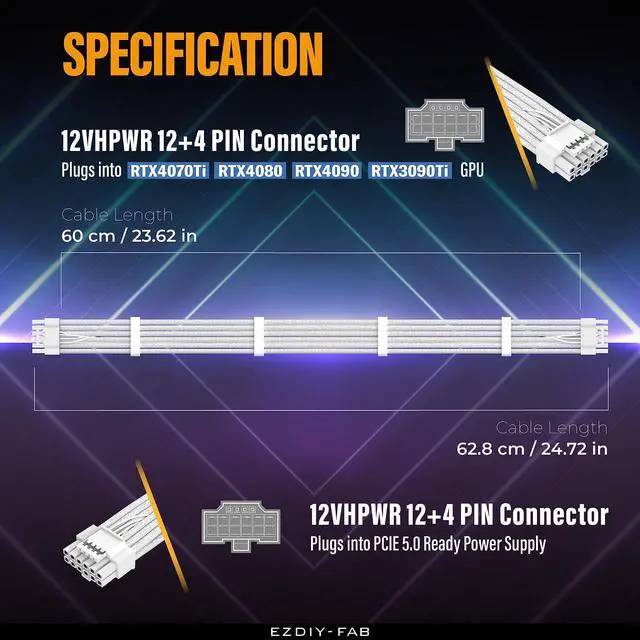 Effortlessly connect your RTX40' series graphics card to an ATX3.0 power supply with the EZDIY-FAB 12VHPWR Male To Male PSU Cable. Achieve a sleek and secure setup, ensuring both aesthetics and safety.